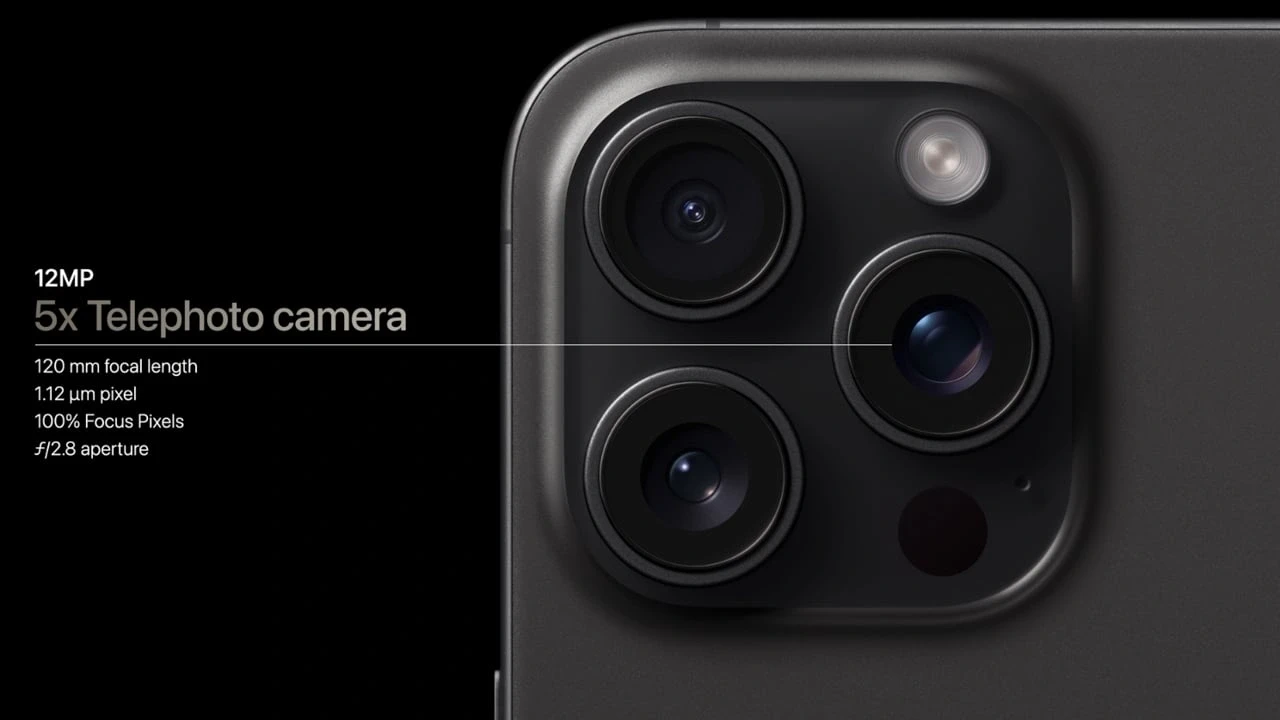 5x Telephoto camera: A 12MP sensor with f/2.8 aperture and 120mm equivalent focal length powers the zoom