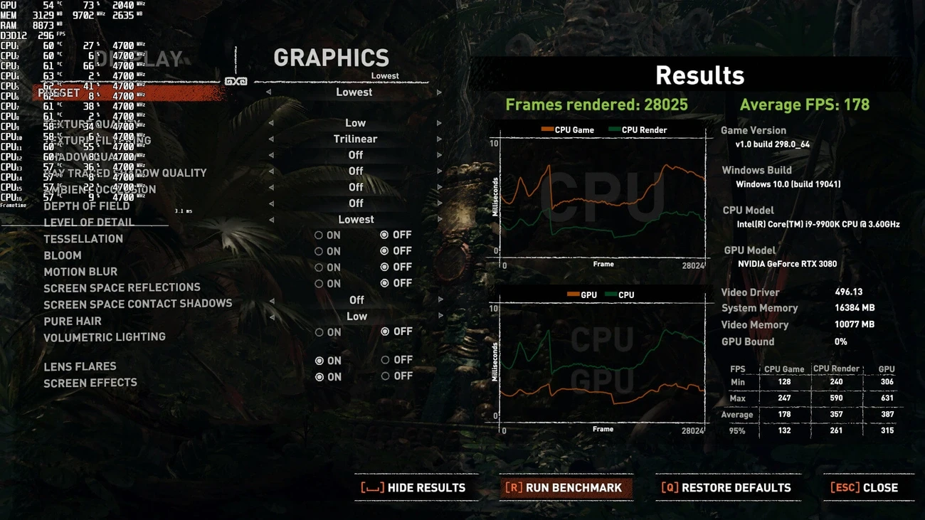 The benchmark runs a detailed sequence that shows you exactly how the game will perform. The test takes more than 5 minutes to complete—much longer than other games. Some players say the benchmark might crash after you change resolution, so you might need to restart the game.