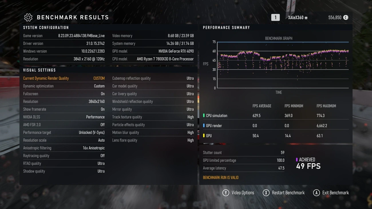 Forza Horizon 5: Settings → Graphics → Start Benchmark Mode